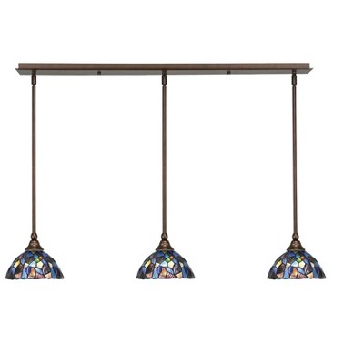 Toltec Lighting Any 3 - Light Chandelier in Brushed Nickel with 19" Kaleidoscope Art Glass Shade