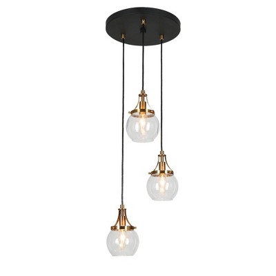 3-Light 18" Adjustable Industrial Globe Hanging Metal/Clear Glass Ceiling Pendant - Lalia Home