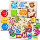 BenBen Wooden Jigsaw Puzzles for Kids 3-6, 6 Pack 24 Pcs Preschool Learning Educational Toys