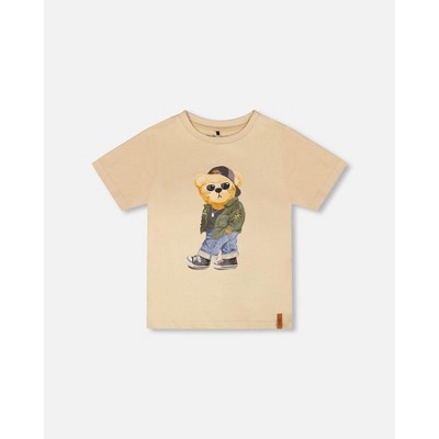 Deux par Deux Boy Organic Cotton Jersey T-Shirt with Print Beige