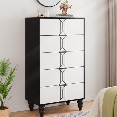 5 Drawers Dresser, Modern Wooden Tall Dresser with Deep Drawers, Chest of Drawers for Bedroom