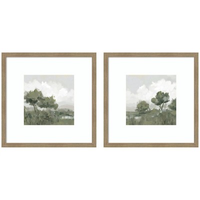 Kate and Laurel Tranquil Landscape 2 Piece Framed Wall Art Print Set by Amy Lighthall, Woodgrain Stripe Blonde, 2 Piece Set 25x25