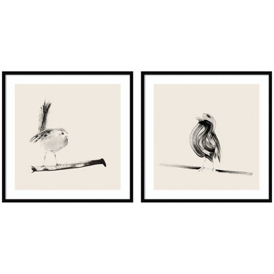 Kate and Laurel Sketched Bird On Branch 2 Piece Framed Wall Art Print Set by Danushka Abeygoda, Svelte Noir Black, 2 Piece Set 33x33