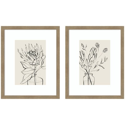 Kate and Laurel SB Protea Sketch No. 1 & No. 2 2 Piece Framed Wall Art Print Set by Sara Berrenson, Woodgrain Stripe Mocha, 2 Piece Set 20x25