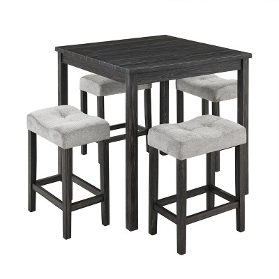 Gulches 5-Piece Industrial Dining/Bar Table Set - Faux Wood Grain Surface, 4 Ergonomic Fabric-Cushioned Stools, Space-Saving Design