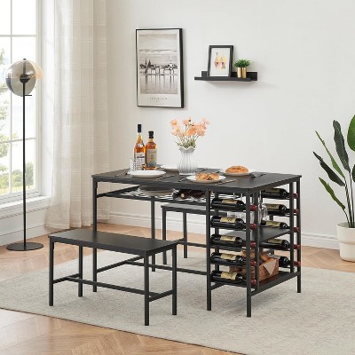 VINGLI 3 Piece Dining Set,Small Kitchen Table Set for 2,Kitchen Wooden Table and 2 Chairs for Small Space,Metal Frame,Wine Rack,Sliver&Black