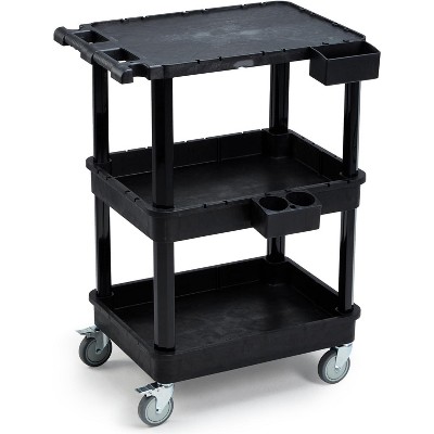 Aoibox 3 Tier Utility Cart Flat Top and Deep Shelves 27.5 x 18.25 Rolling Cart with 4 Inch Wheels Heavy Duty Plastic 330 lbs 1 Piece