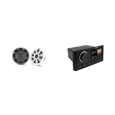 Kicker MS-RA670 Apollo Marin w/ KM65 6.5-Inch (165mm) Marine Coaxial Speakers with 3/4-Inch Tweeters, LED, 4-Ohm, Charcoal and White Grilles , Bund...