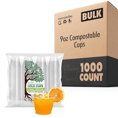 Stock Your Home Compostable Cold Cups 16 oz 1000 Pack Plant Based Eco Friendly Disposable Cups for Water Wine Beer Samples