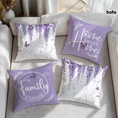 Lomsoe 4pcs Wisteria Flower Home Family Quote Soft Cushion Cover For Sofa Bedroom Living Room Decor 18x18in.