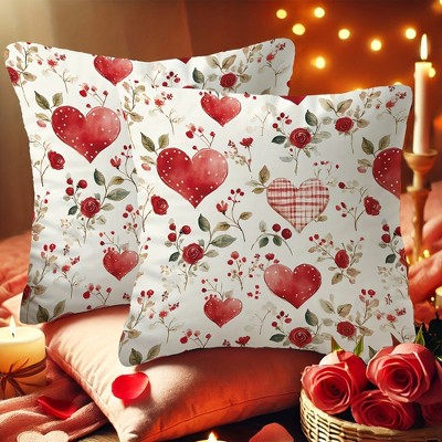 Lomsoe 2pcs Heart-Shaped Rose Cushion, Soft And Romantic, Ideal for Decorating Sofas in Living Rooms And Bedrooms, 18x18inch.
