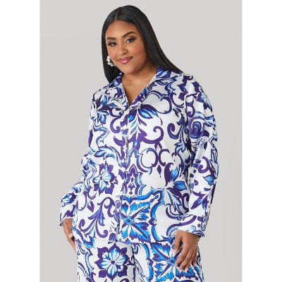 Women's Floral Print Satin Shirt - Ashley Stewart