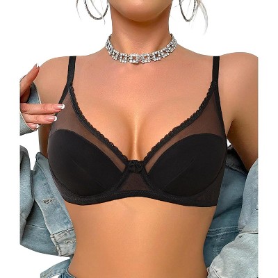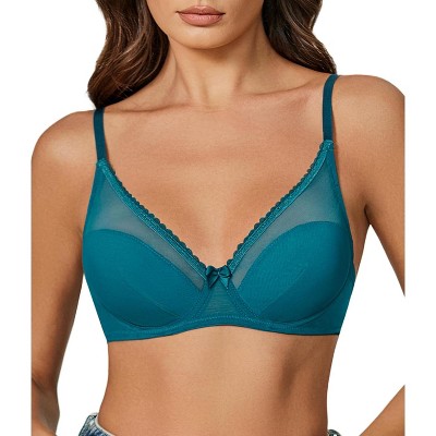 Avidlove Bras for Women Lace Mesh Bra Deep V Minimizer Bras Comfy Underwire Bralette No Padded Lingerie