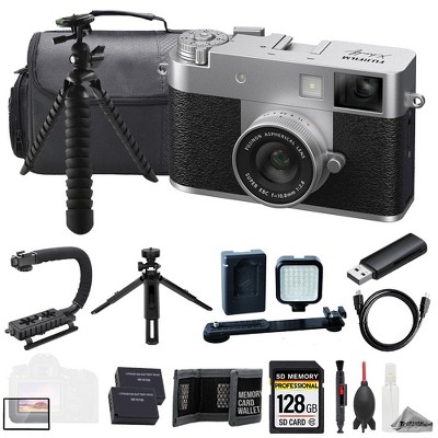 FUJIFILM X half Compact Digital Camera (Silver) Ultimate Kit with 128GB Memory Card, LED Light & Tripods