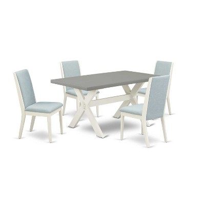 HomeStock 5-Piece Linen White Finish Solid Wood Top Dining Table with 4 Chairs