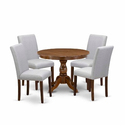 HomeStock 5-Piece Round Antique Walnut Finish Solid Wood Top Dining Table with 4 Upholstered Chairs with Slat Back