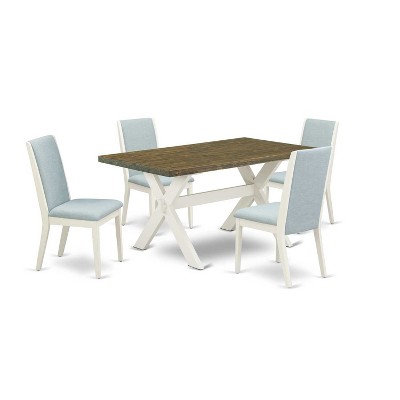 HomeStock 5-Piece Natural Oak Finish Solid Wood Top Dining Table with 4 Parson Chair