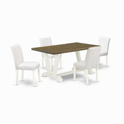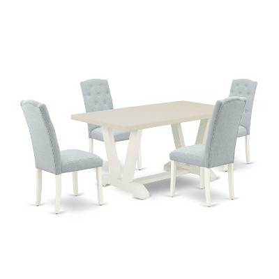 HomeStock 5-Piece Rectangle Linen White Finish Solid Wood Top Dining Table with 4 Parson Chair