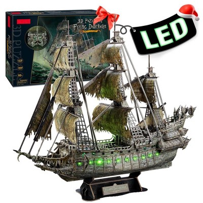 Etokfoks 360 Piece 3D Pirate Ship Model Kit Flying Dutchman Ghost Ship with Green LED Lights 26.5 in x 10.2 in x 25.1 in for Adults