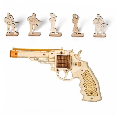Etokfoks 3D Wooden Pistol Model Kit 1 Piece Rubber Band Gun Puzzle for Adults DIY Mechanical Assembly Brain Teaser Toy Gift