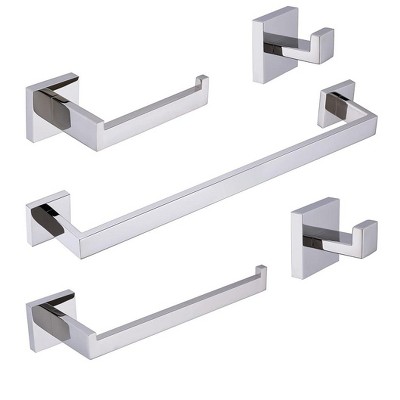 Itopfox Polished Chrome 5-Piece Bathroom Hardware Set with Towel Bar, Holder, Toilet Paper Holder, and Hook, Stainless Steel Wall Mounted