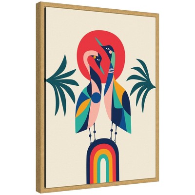 Kate & Laurel All Things Decor 18"x24" Sylvie Modern Vibrant Rainbow Geese Framed Canvas by Rachel Lee Bright Gold