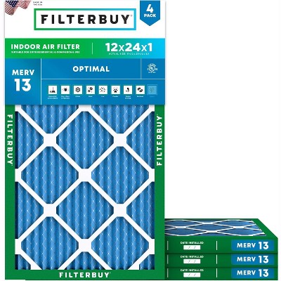 Filterbuy 12x24x1 Air Filter (4-Pack), Pleated MERV 13 Health Defense Replacement HVAC AC Furnace Filters (Actual Size: 11.50 x 23.50 x 0.75)