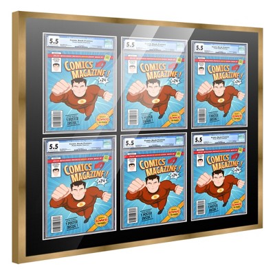PosterPalooza | Comic Book Frame for 6 Graded Comics - Silver Wood with Black Mat Comic Frame - 30x30