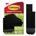 Command 28pc M/L Black Picture Hanging Strips: Wall Adhesive for Frames, Heavy Duty, Plastic, 3.649" Length, 0.751" Width