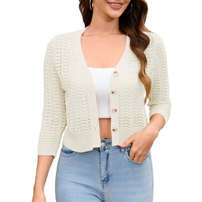 Women’s Cropped Cardigan 3/4 Sleeve Bolero Shrug for Dresses Lightweight Open Front Button Down Sweater