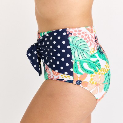 Women's Color Block High-waisted Bikini Bottom - Marine Snap, 3X