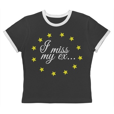Rerun Island Women's I Miss My Ex Short Sleeve Graphic Cotton Retro Vintage Ranger Baby Tee - Caviar White 3X