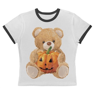 Social Collective Women Bear Pumpkin Short Sleeve Graphic Cotton Retro Vintage Ranger Baby Tee