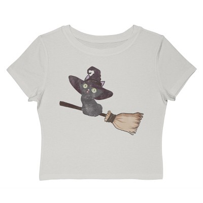 Social Collective Women Kitty Witch Short Sleeve Graphic Cotton Retro Vintage Ranger Baby Tee