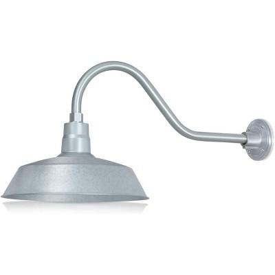 14in. Galvanized Outdoor Gooseneck Barn Light Fixture with Long Extension Arm - Wall Sconce Farmhouse 9W 900lm A19 LED Bulb (5000K Cool White)