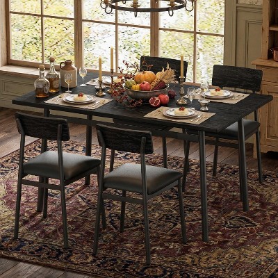 5-Piece Dining Table Set for 4, Modern Kitchen Table w/Storage Rack, Wood Top & Metal Frame, 4 Padded Chairs for Small Space, Apartment