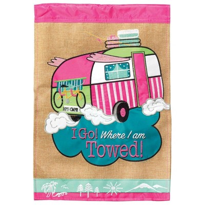 Magnolia Garden I Go Where I Am Towed Pink Camper 29 x 42 Inch Polyester Garden Flag