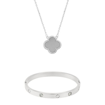 Adornia 14k Gold Plated Mixed Mother of Pearl and CZ Clover Station Necklace