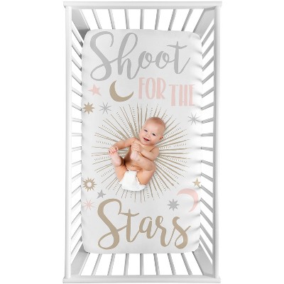 Sweet Jojo Designs Girl Photo Op Fitted Crib Sheet Celestial Pink Gold and Grey