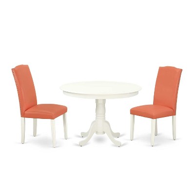 Dining Room Table Set Pink Flamingo 42 Inch Table w/ 2 Parsons Chairs Linen White Legs PU Leather