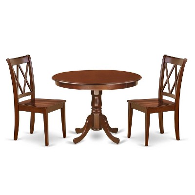 Antique Round Dining Set - 42 Inch Table with 2 Double X Back Chairs - Home Decor