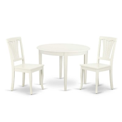 Round Dining Table Set 3pc - 42 Inch Table & 2 Parsons Chairs - Linen White Legs - Light Beige Fabric
