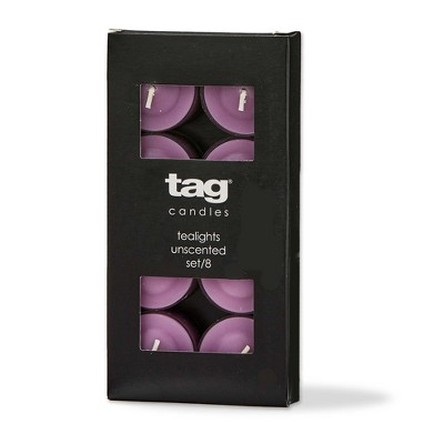 tag Color Studio Tealight Candles Set of 8 Lilac Smokeless Paraffin Wax Burn Time 3 Hrs