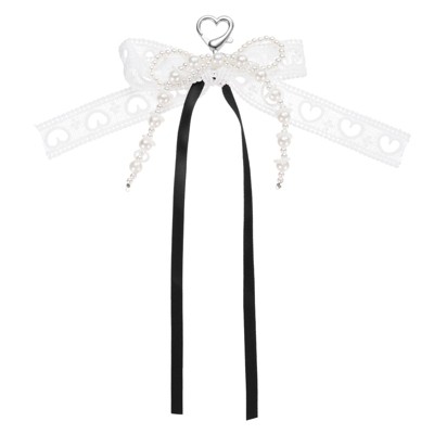 Unique Bargains Hollow Heart Purse Backpack Decor Imitation Pearl Bow Keychain