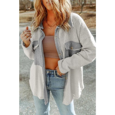 Black Contrast Flap Pockets Relaxed Shacket