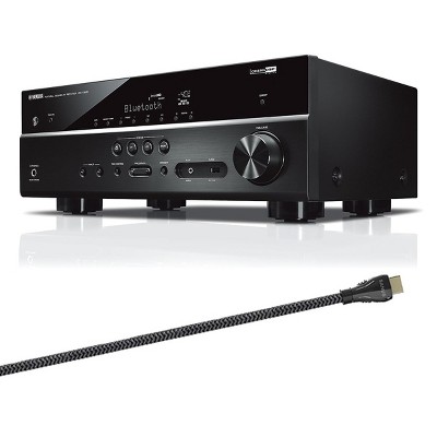 Yamaha RX-V385BL 5.1 Channel AV Receiver with Sanus Ultra High Speed 8K 6.56 ft. HDMI 2.1 Cable