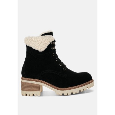 Journee Signature Women's Genuine Leather Malle Round Toe Stacked Combat Booties