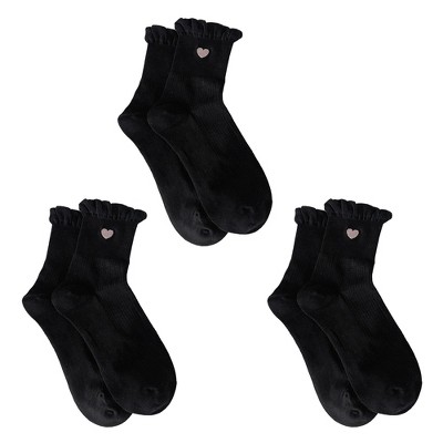 Anna-Kaci Women's 3-Pack Breathable Cotton Blend Socks with Ruffle Trim and Valentine Heart Embroidery