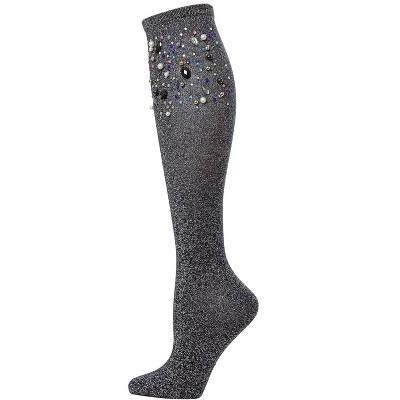 Memoi Women's Mixed Jewel Shimmer Knee High Socks Gray 9-11