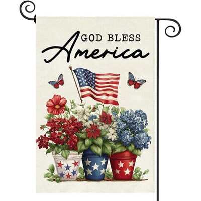 Lomsoe 4th of July Patriotic Floral Garden Flag Independence Day Yard Flag Welcome Yard Sign Independence Day Holiday Outside Garden Decor 12x18 Inch